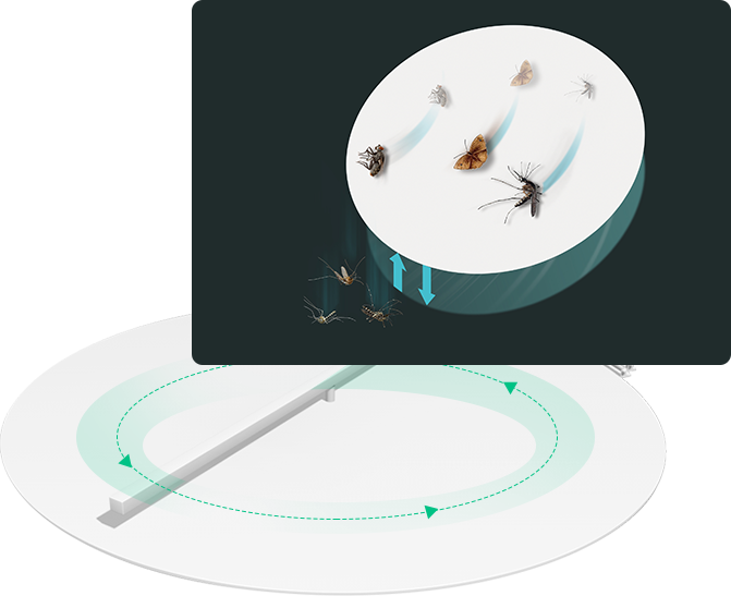 360°環繞散射LED紫外光波,3種特定波長強勁激化各類害蟲生理能動機制,快速吸引害蟲靠近。